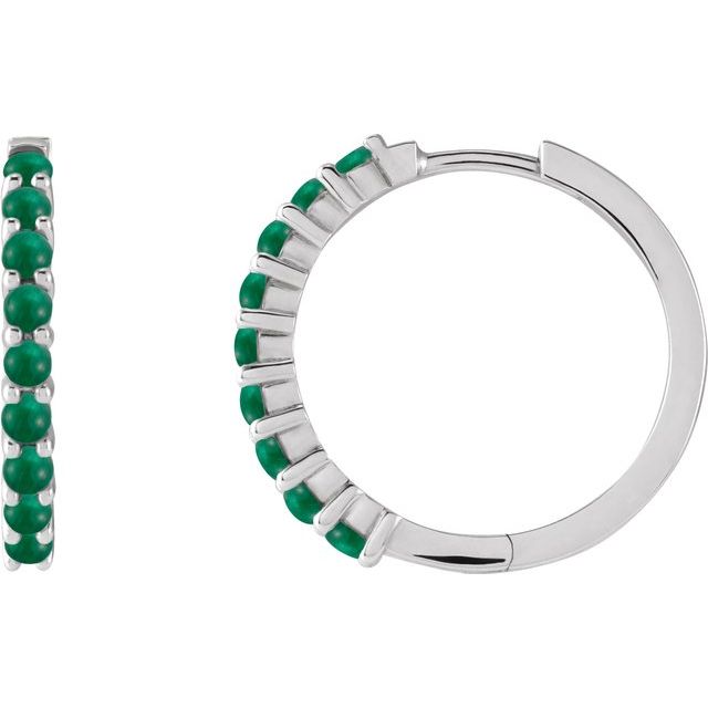 14K Rose Natural Emerald Cabochon Huggie Hoop Earrings