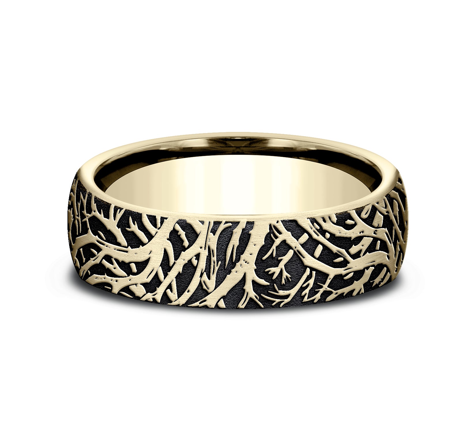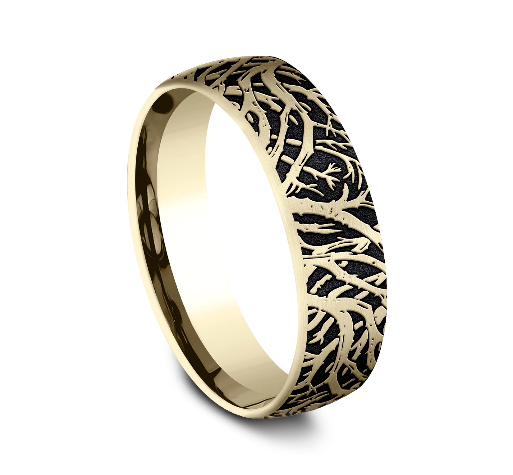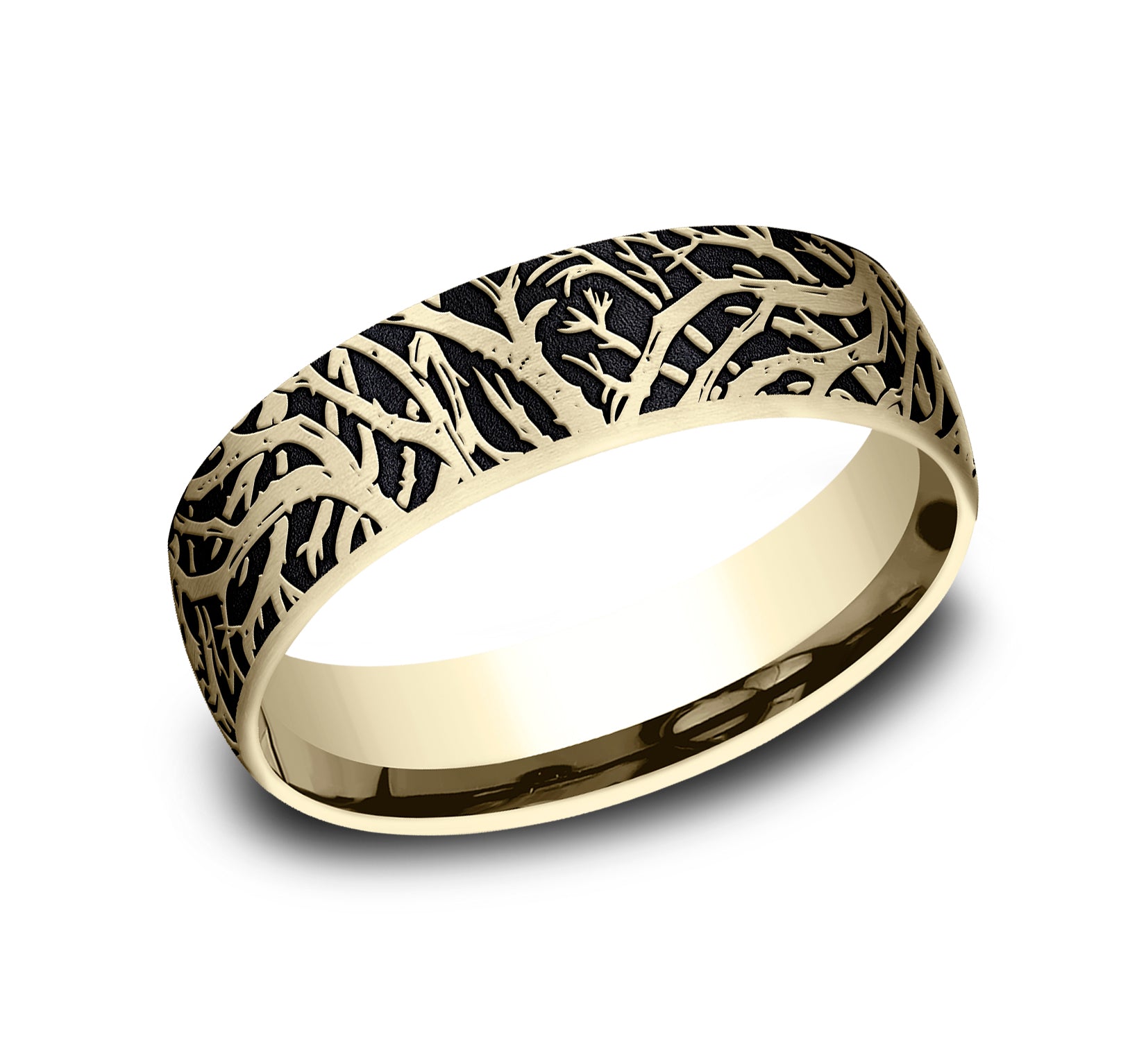 6.5mm, Comfort fit 14K Yellow Gold Forest branch pattern