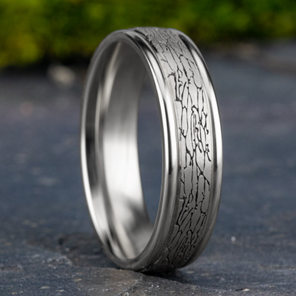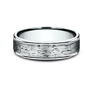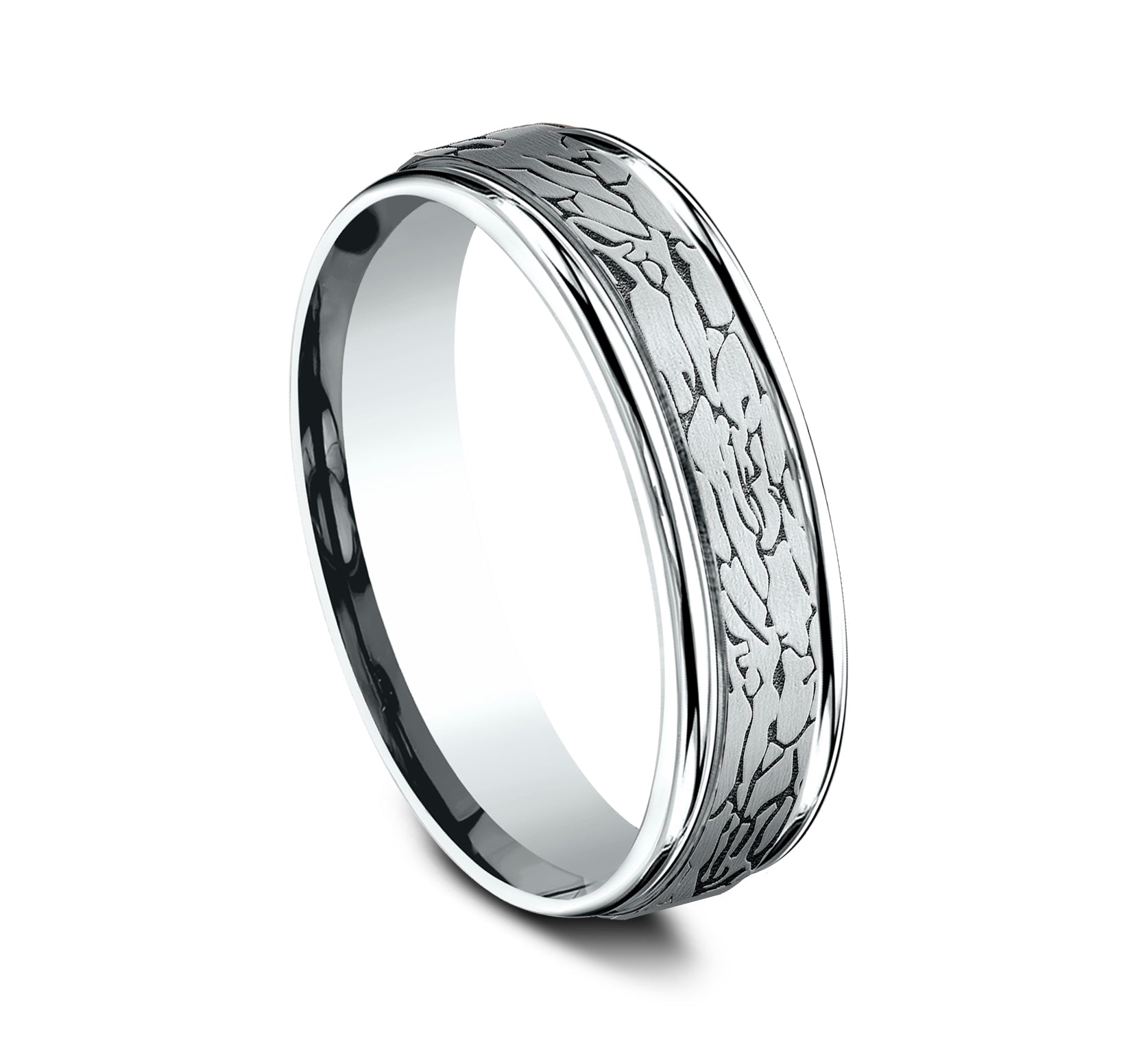 6mm, Comfort fit 14K White Gold Fractured rock pattern, polished round edges