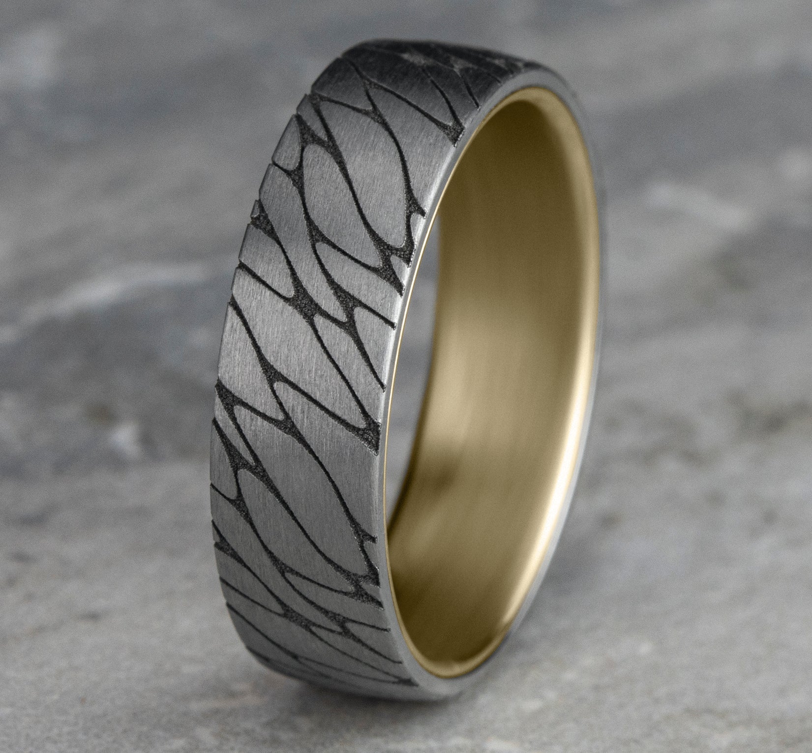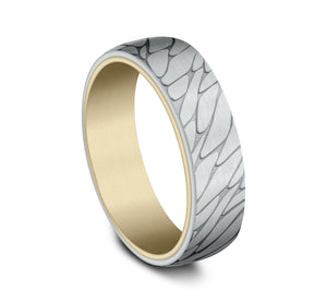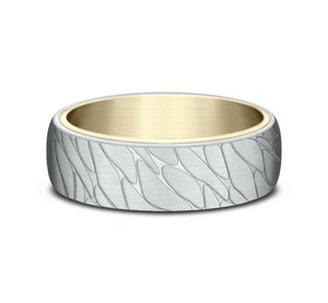 6.5mm, Comfort fit 14K Yellow and White Gold Pebble pattern