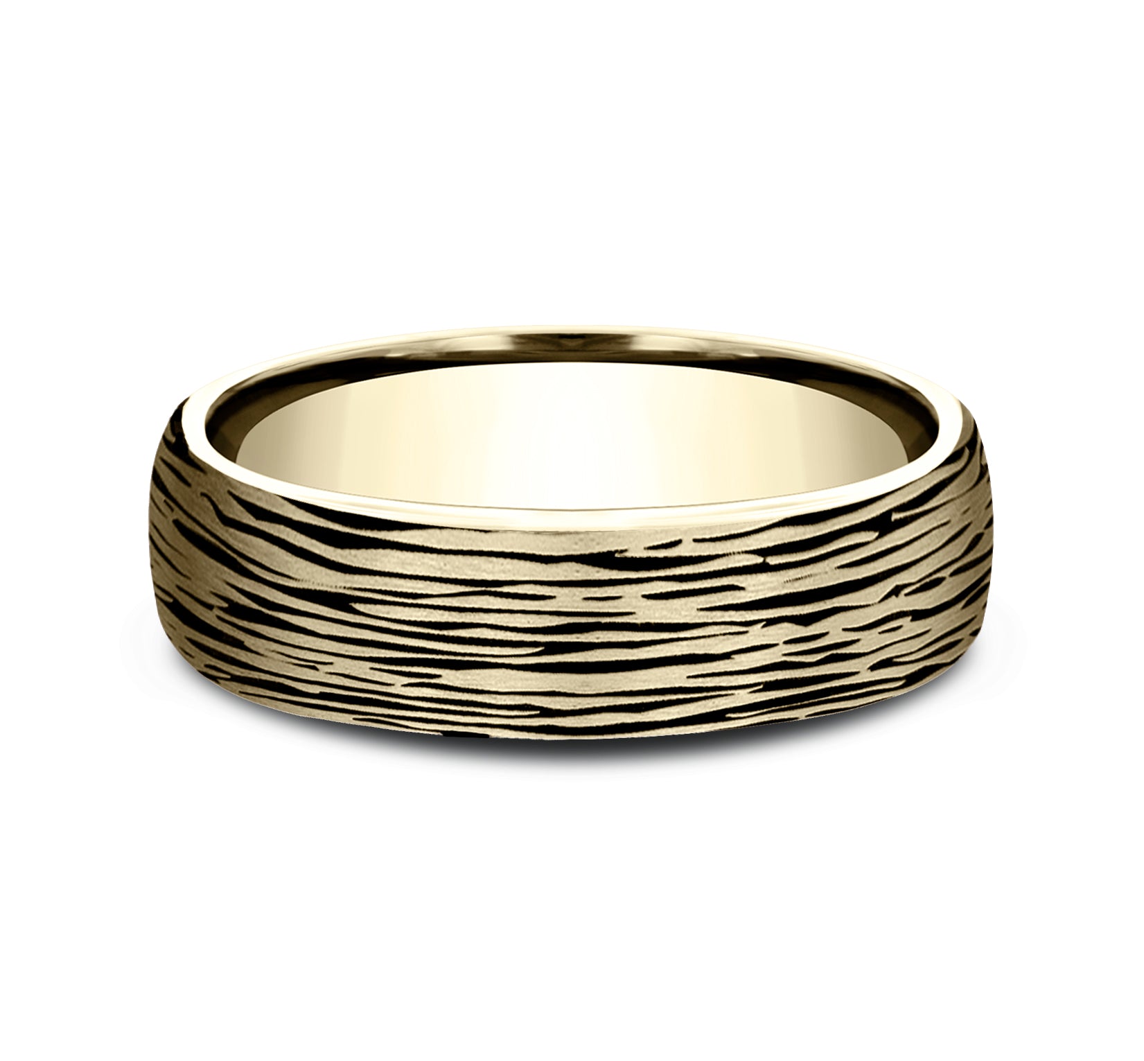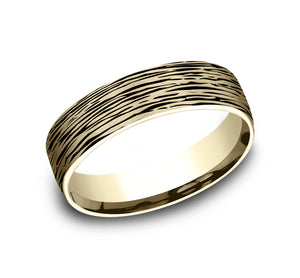 6.5mm, Comfort fit 14K Yellow Gold Horizontal bark pattern
