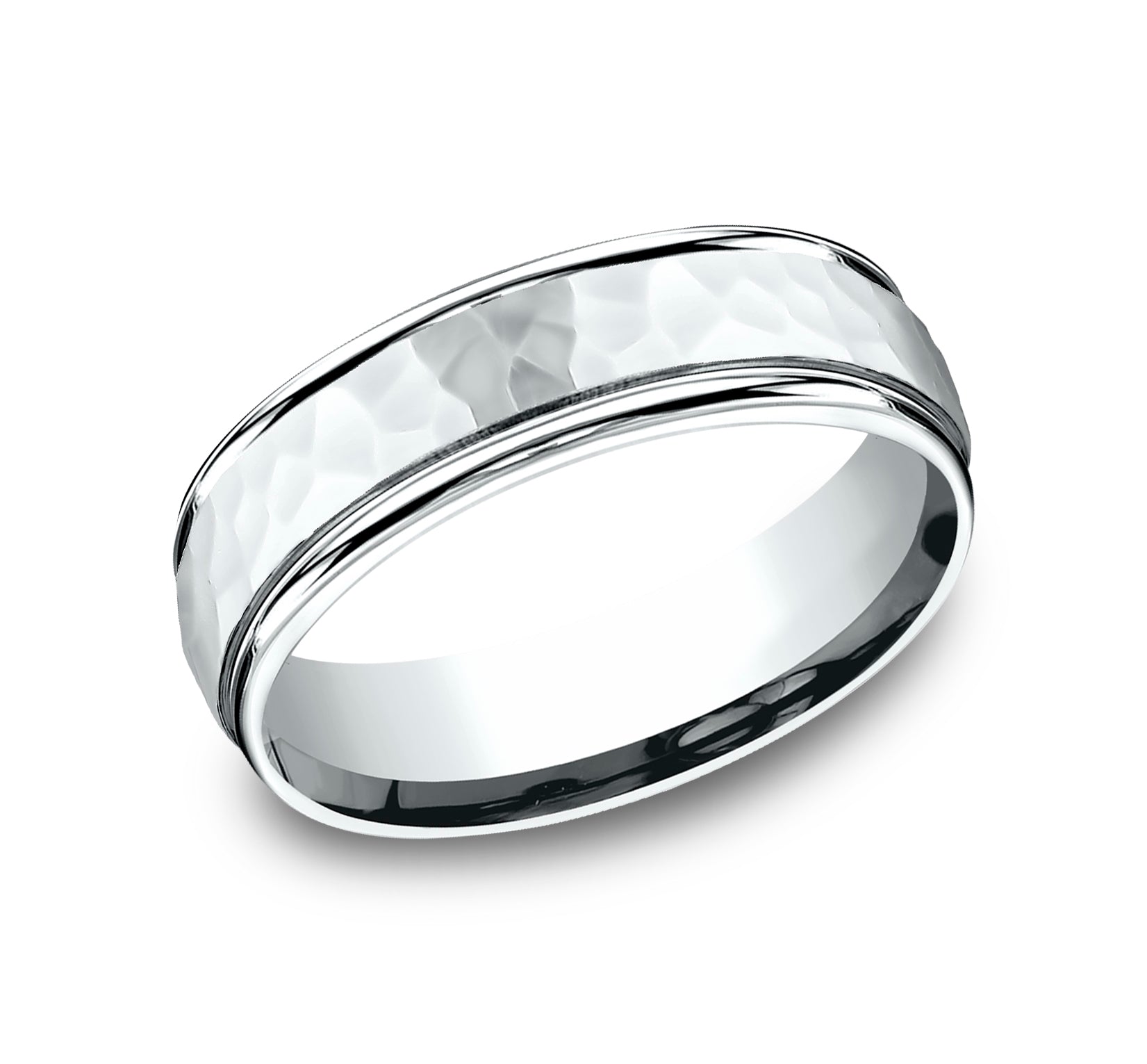6.5mm, Comfort fit 14K White Gold Hammered polished finish center, polished round edges