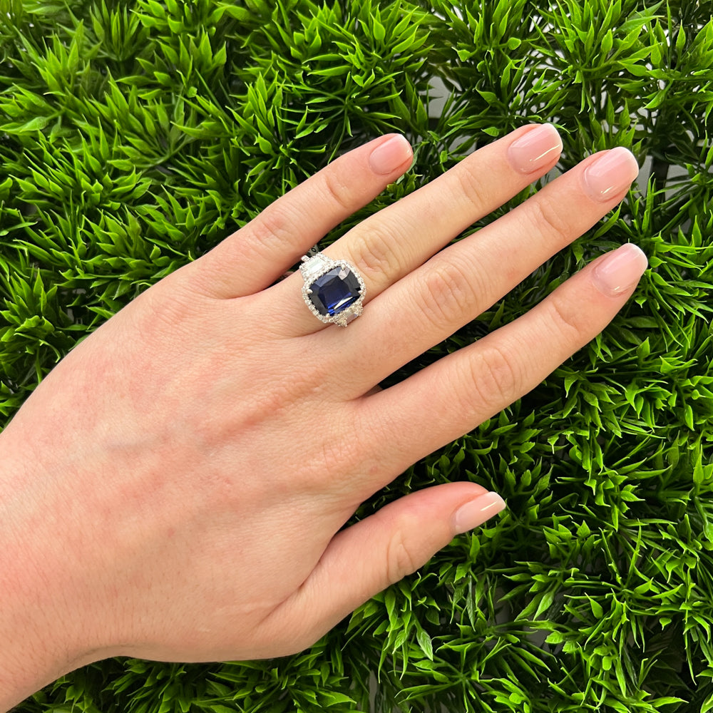 DFJ Platinum Cushion Cut Sapphire & Diamond Ring