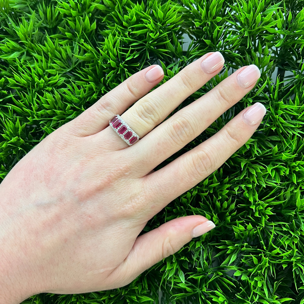 DFJ 14 Karat White Gold Five Rubiy & Diamond Halo Band