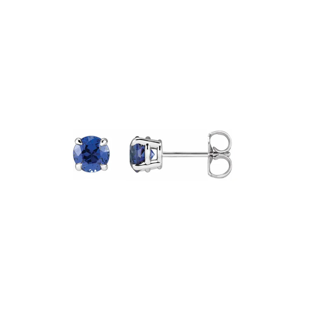 DFJ 14 Karat White Gold Round Sapphire Stud Earrings - 0.36 TWT