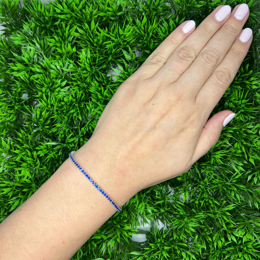 DFJ 14 Karat White Gold Blue Sapphire Tennis Bracelet
