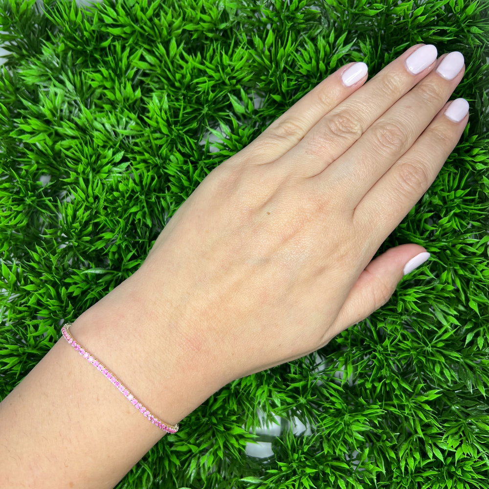 DFJ 14 Karat Yellow Gold Pink Sapphire Tennis Bracelet