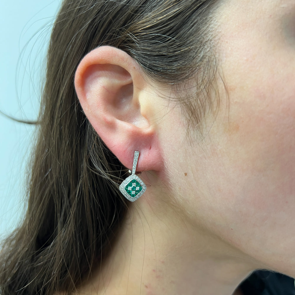 DFJ 18 Karat White Gold Round Emerald Drop Earrings - 0.60 TWT