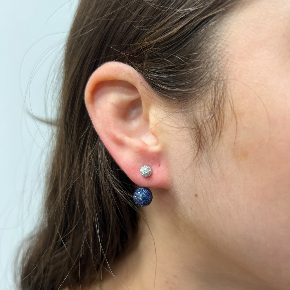 DFJ 18 Karat White Gold Round Sapphire & Diamond Earrings - 0.58 TWT