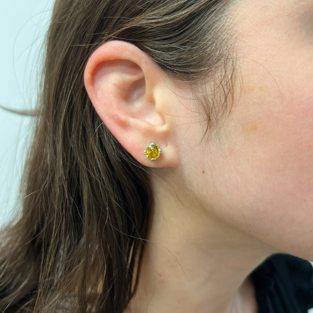 DFJ 18 Karat White Gold Round Yellow Sapphire Stud Earrings - 2.68 TWT
