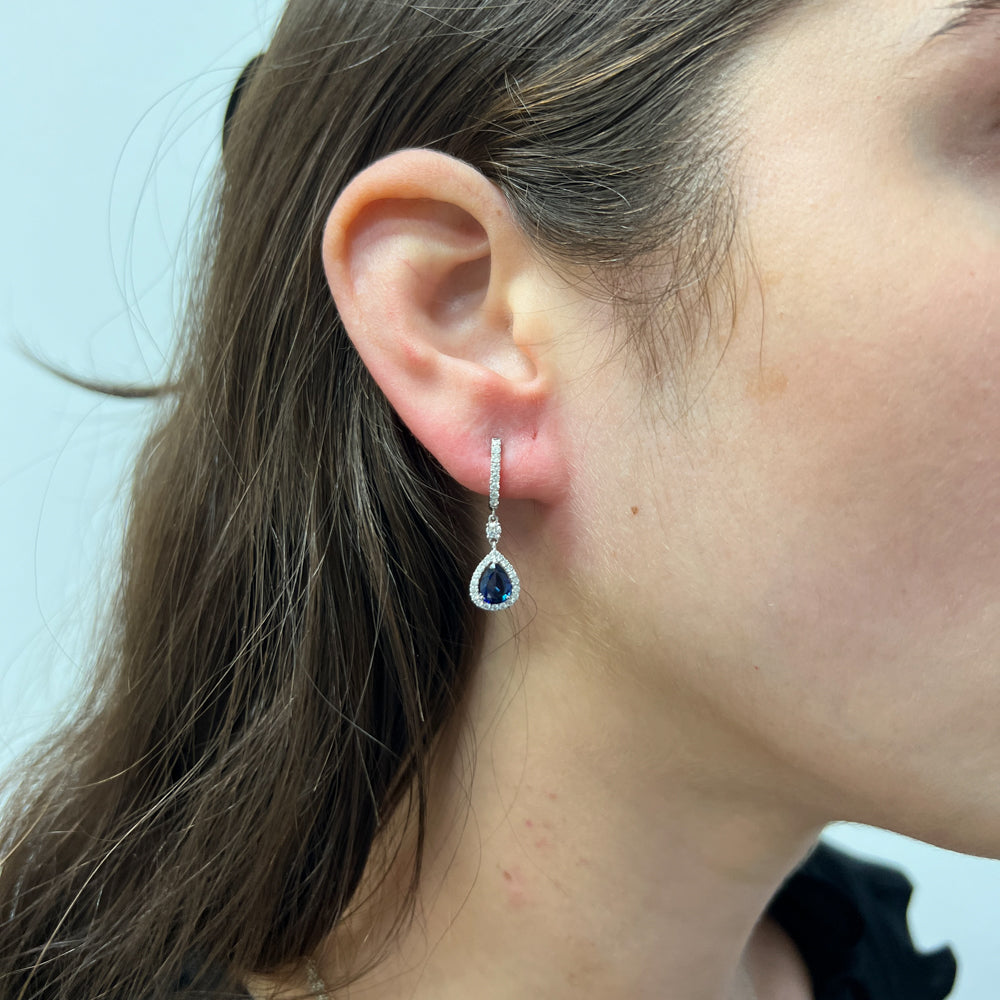 DFJ 18 Karat White Gold Pear Shape Sapphire Drop Earrings - 1.32 TWT