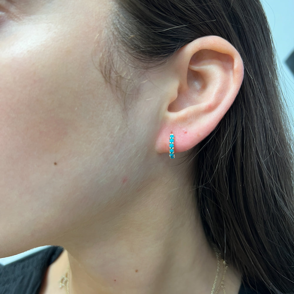 DFJ 14 Karat Rosé Gold Round Brilliant Turquoises Huggies Earrings