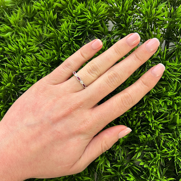 DFJ 18 Karat White Gold Vintage Inspired Ruby & Diamond Band