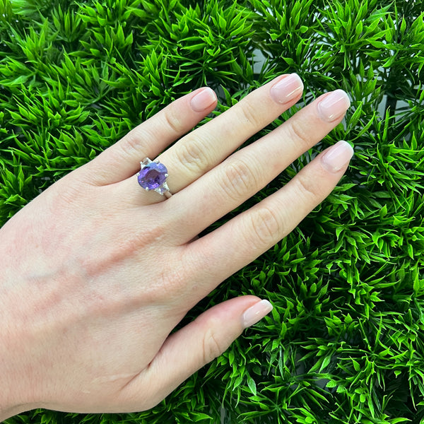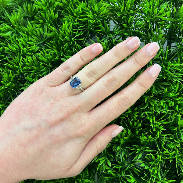 DFJ Platinum Three Stone Purple Sapphire & Diamond Ring