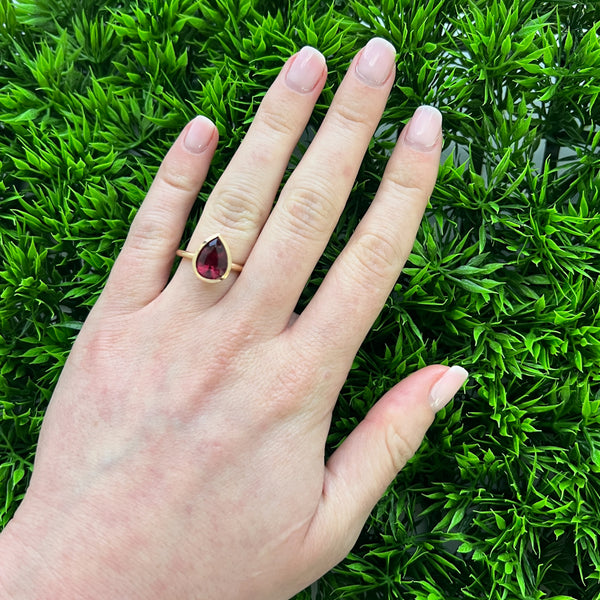 DFJ 14 Karat Rosé Gold Bezel Set Pear Shape Tourmaline Ring