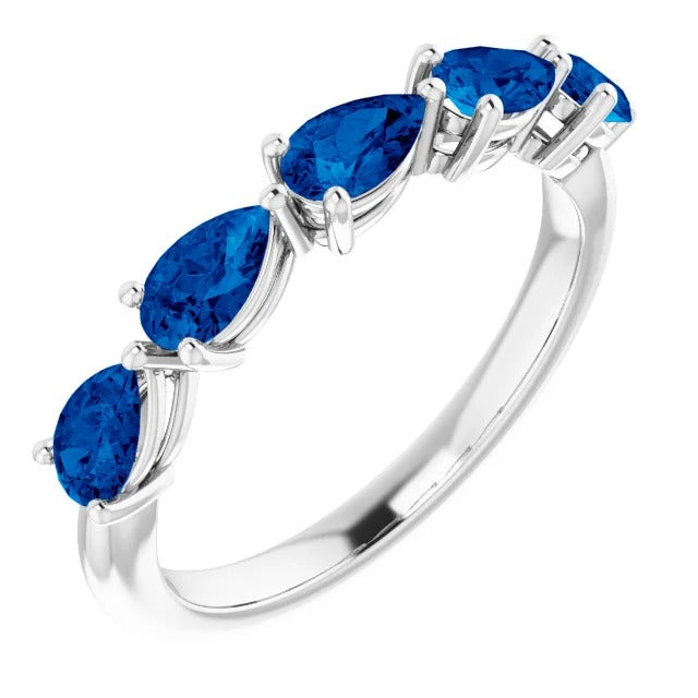 DFJ 14 Karat White Gold Five Stone Pear Shape Sapphire Ring