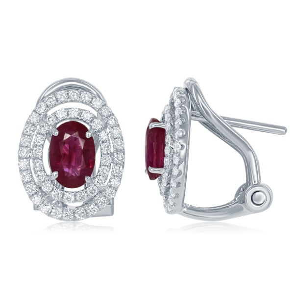 18 Karat White Gold Oval Cut Rubies Double Halo Earrings - 1.12 TWT