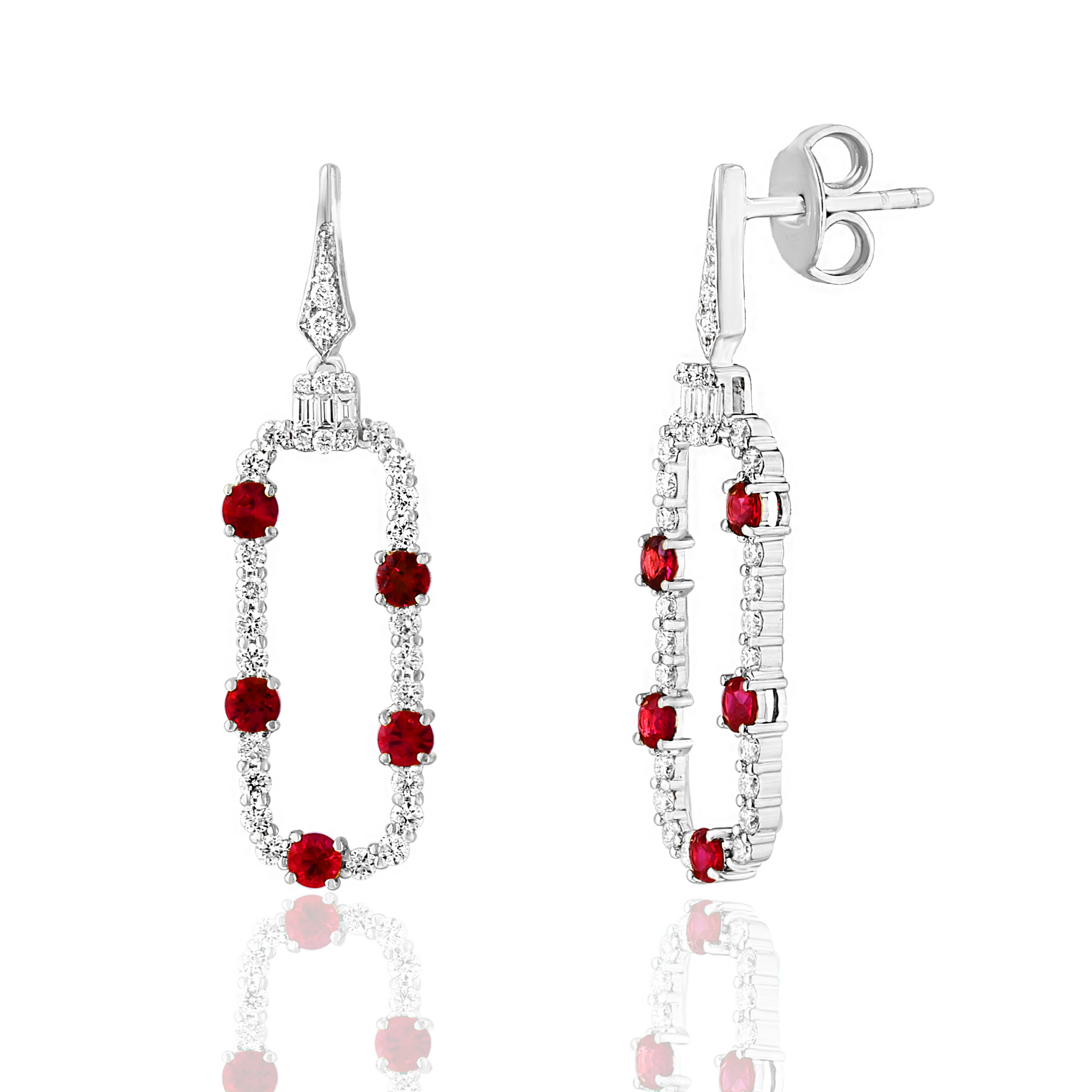 14 Karat White Gold Round Rubies Drop Earrings - 0.80 TWT