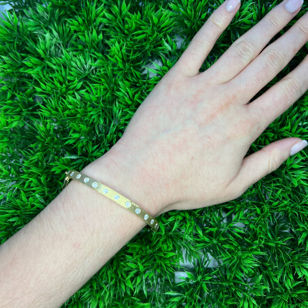 Gabriel & Co. 14 Karat Yellow Gold Bujukan Diamond Chevron Pattern Bangle Bracelet 0.37TWT