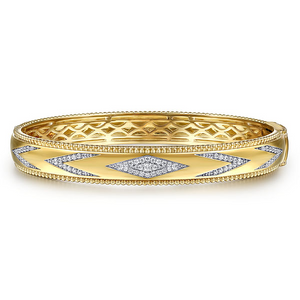 Gabriel & Co. 14 Karat Yellow Gold Bujukan Diamond Chevron Pattern Bangle Bracelet 0.37TWT