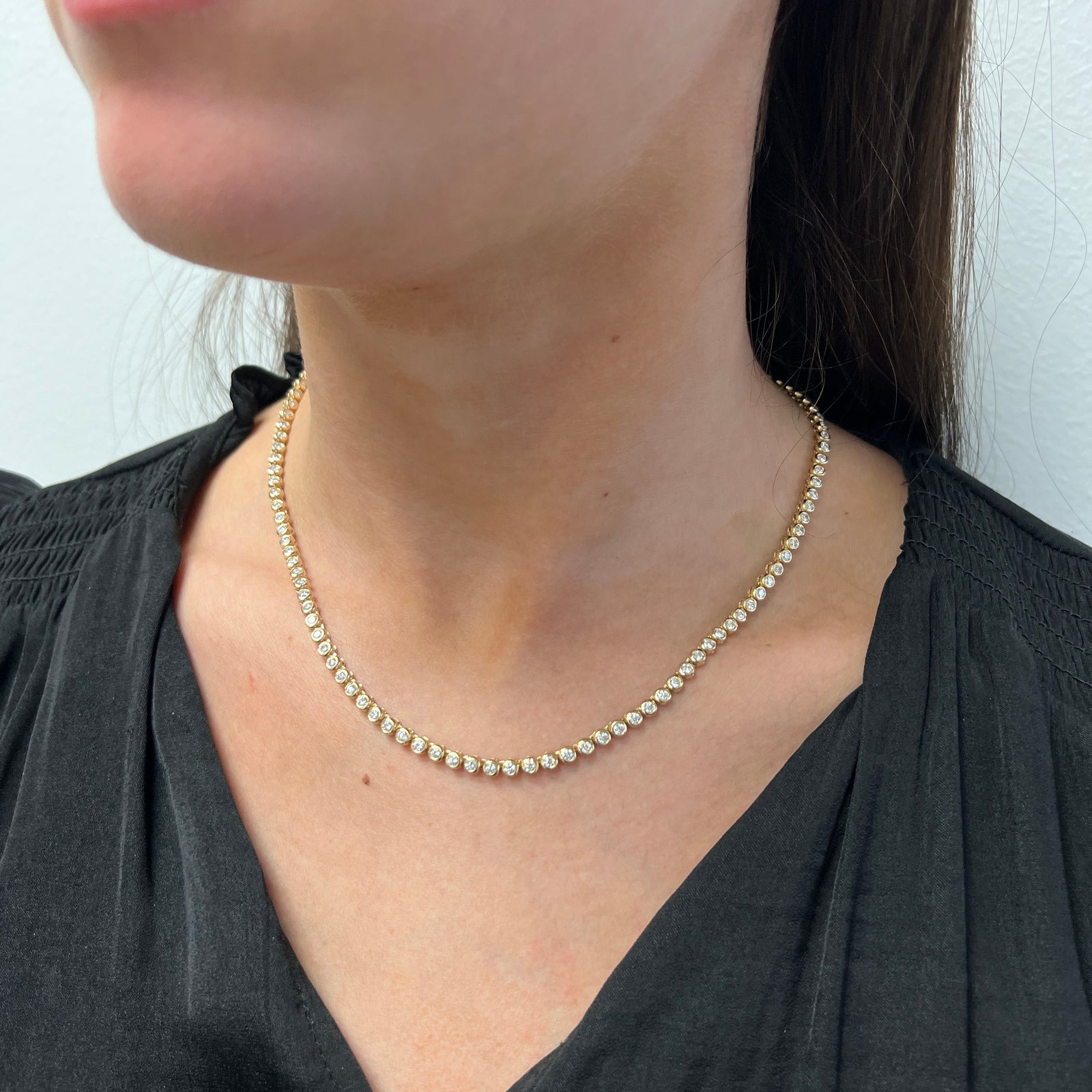 DFJ 14 Karat Yellow Gold Bezel Set Diamond Tennis Necklace