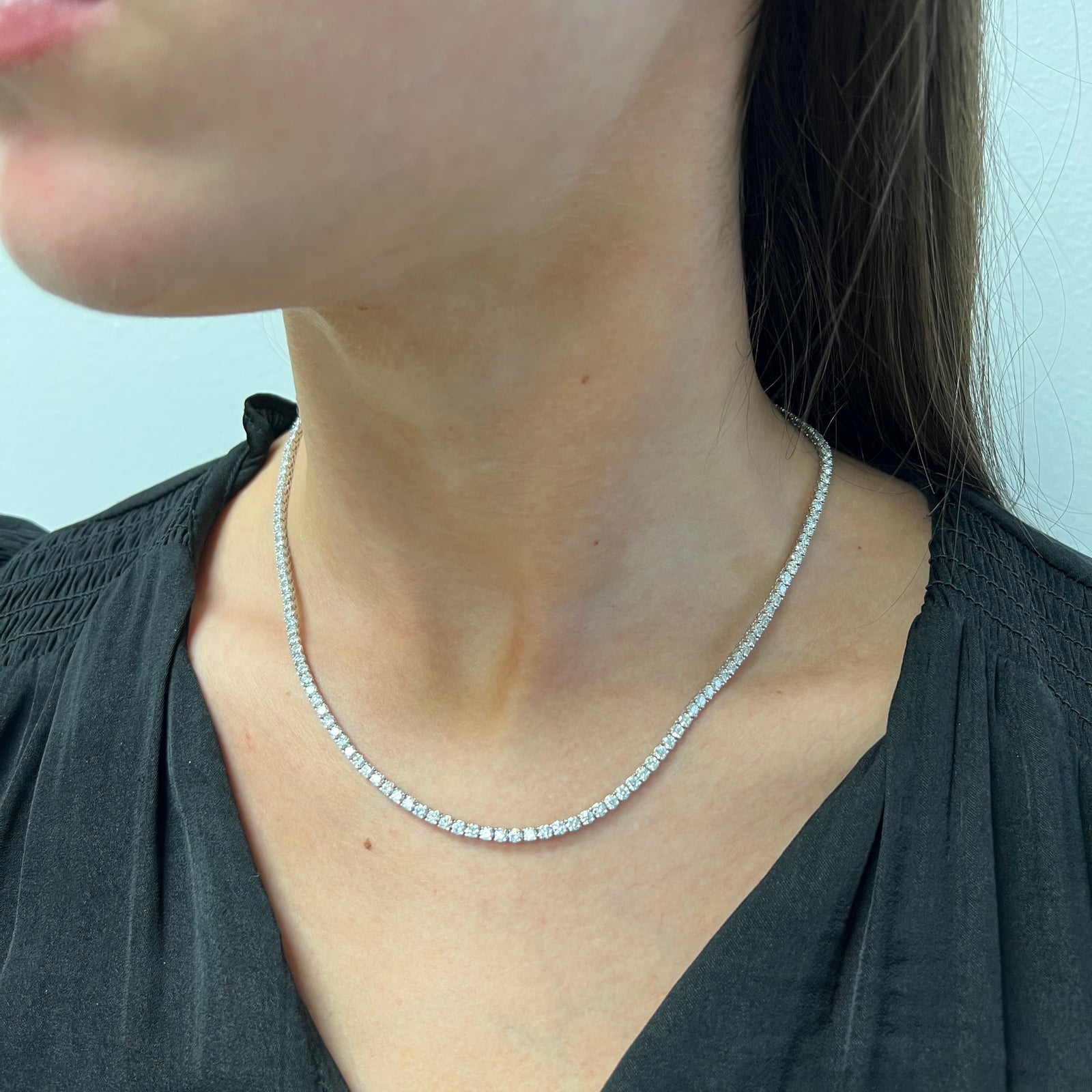 DFJ 14 Karat White Gold Tennis Diamond Necklace, 10.03 TWT