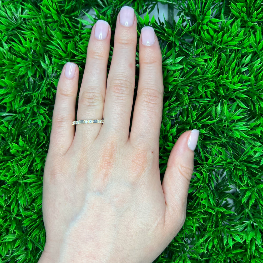 DFJ 18 Karat Yellow Gold Baguette & Round Diamond Band