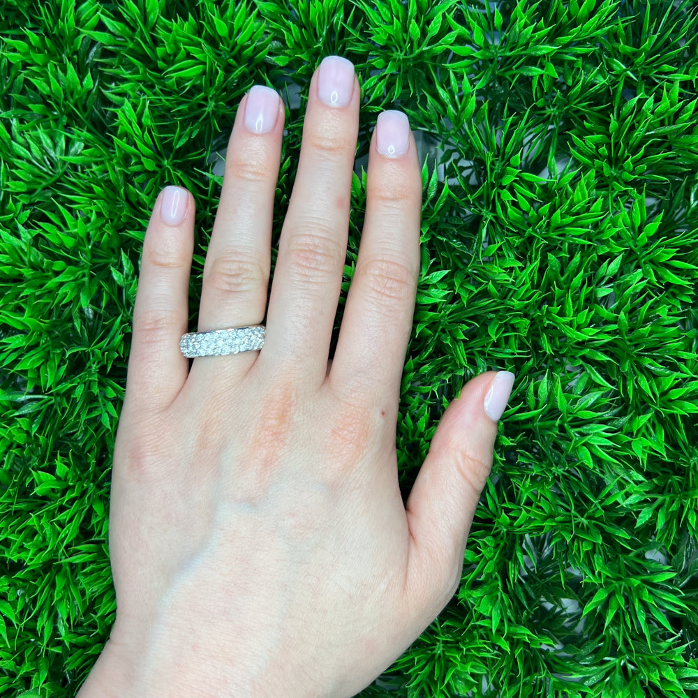 DFJ 18 Karat White Gold Pave Set Domed Diamond Band, 3.60tw