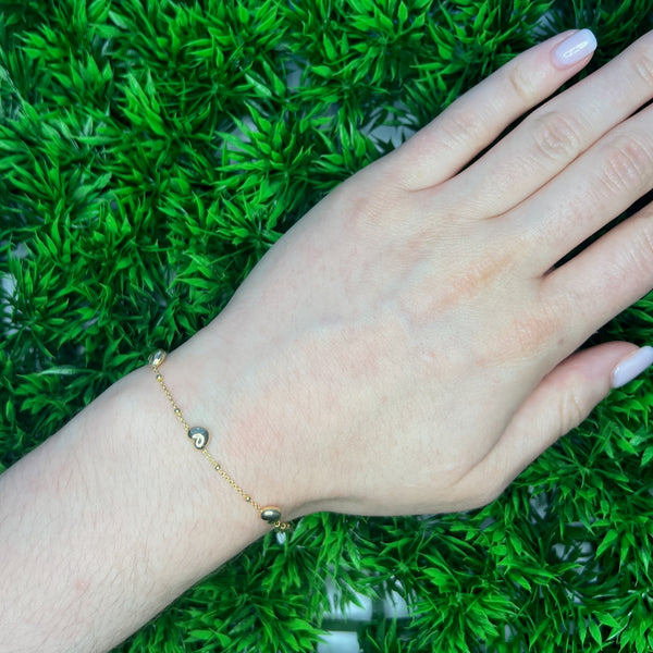 DFJ 14 Karat Yellow Gold Heart Station Bracelet
