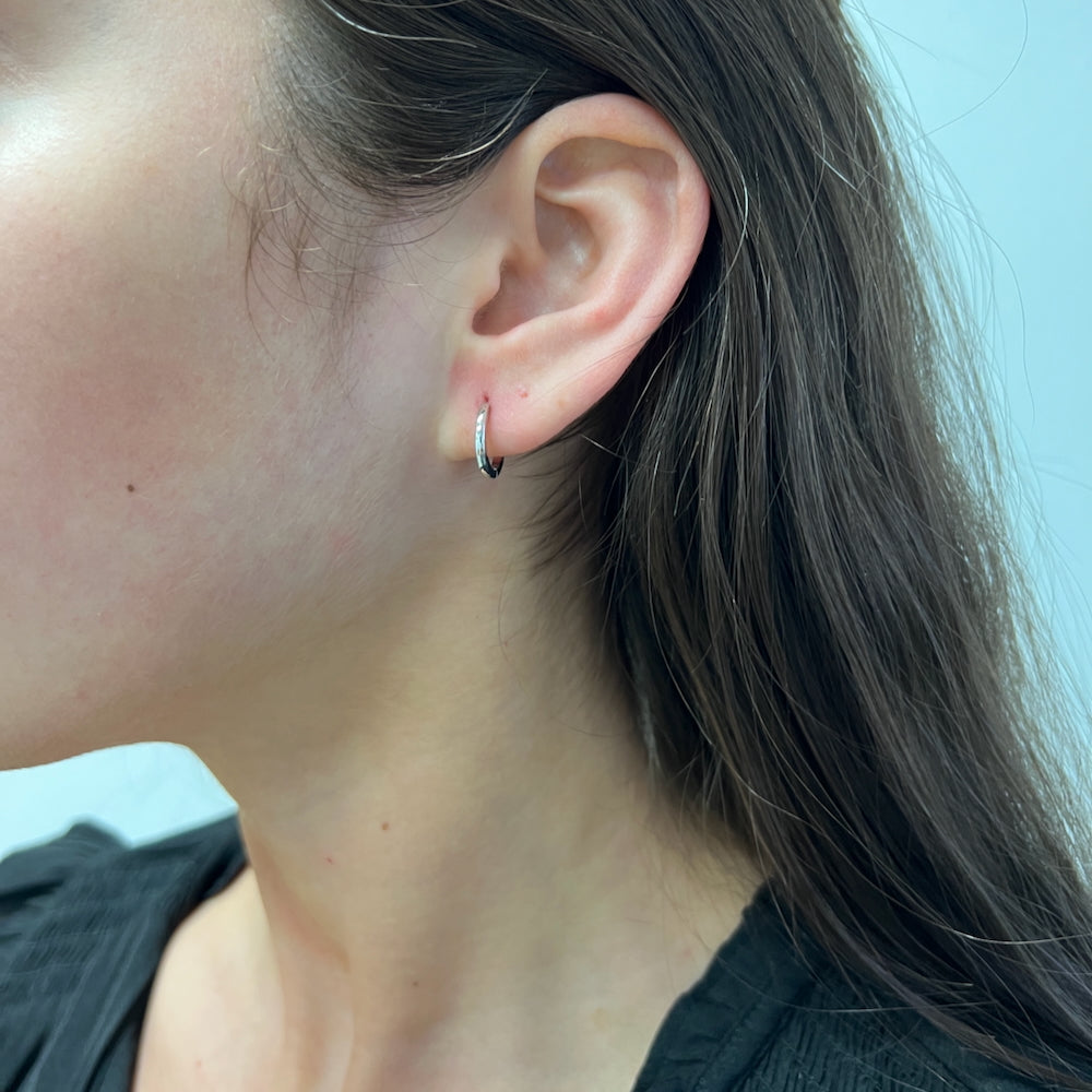DFJ 14 Karat White Gold Flat Huggie Earrings