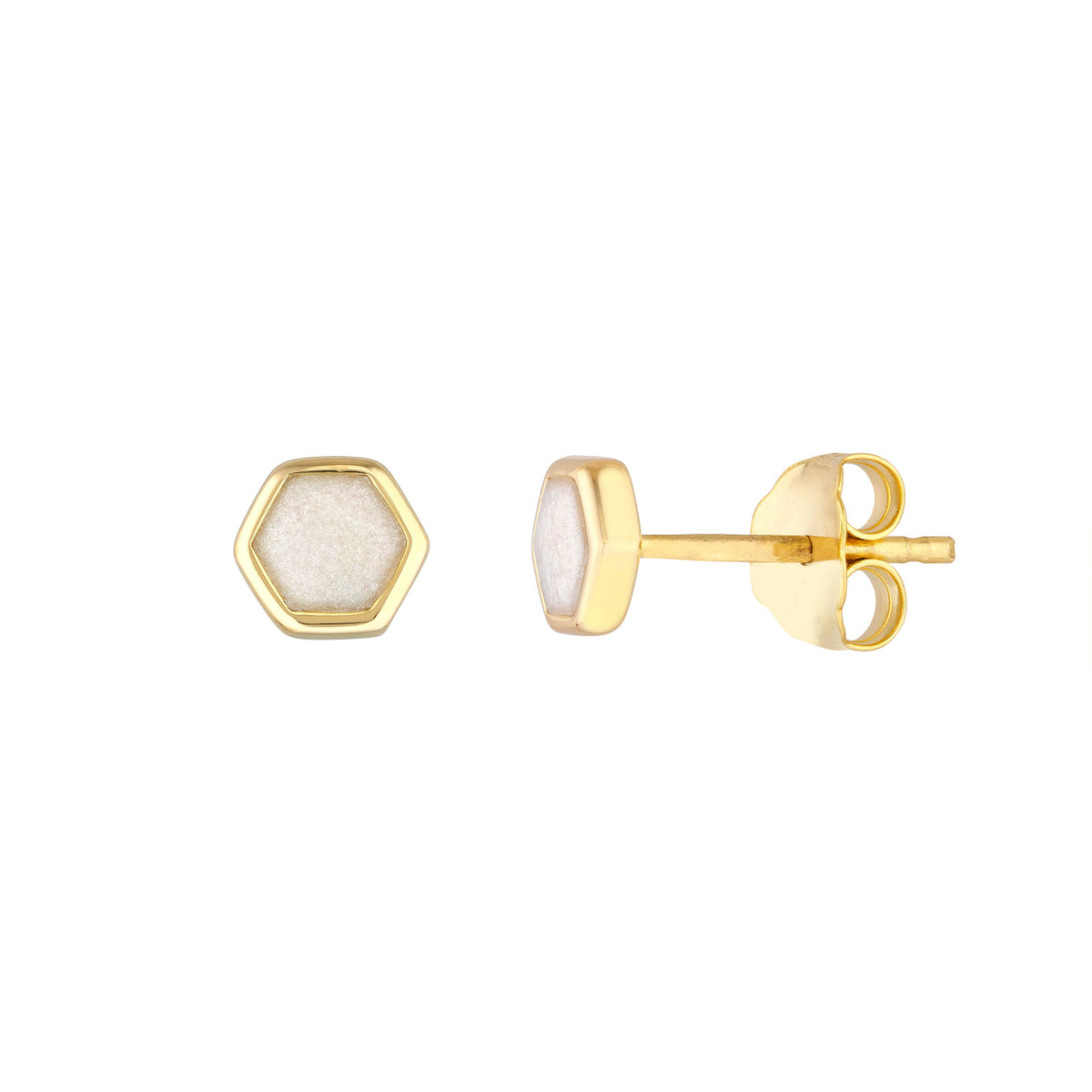DFJ 14 Karat Yellow Gold Pearl Enamel Hex Disc Stud Earrings