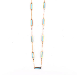 14 Karat Yellow Gold Polished Necklaces with Turquioise Bar Stations