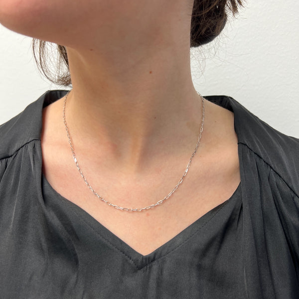 DFJ 14 Karat White Gold Diamond Cut Paperclip Necklace