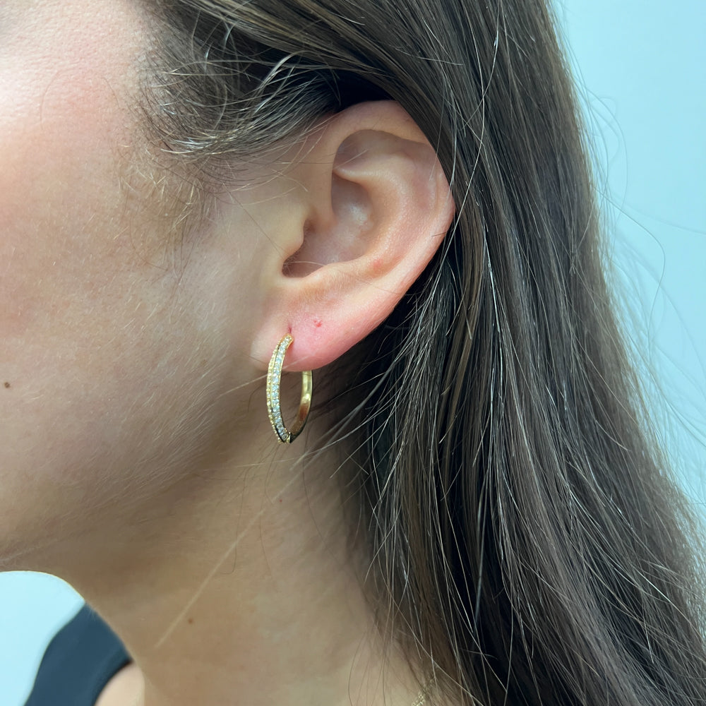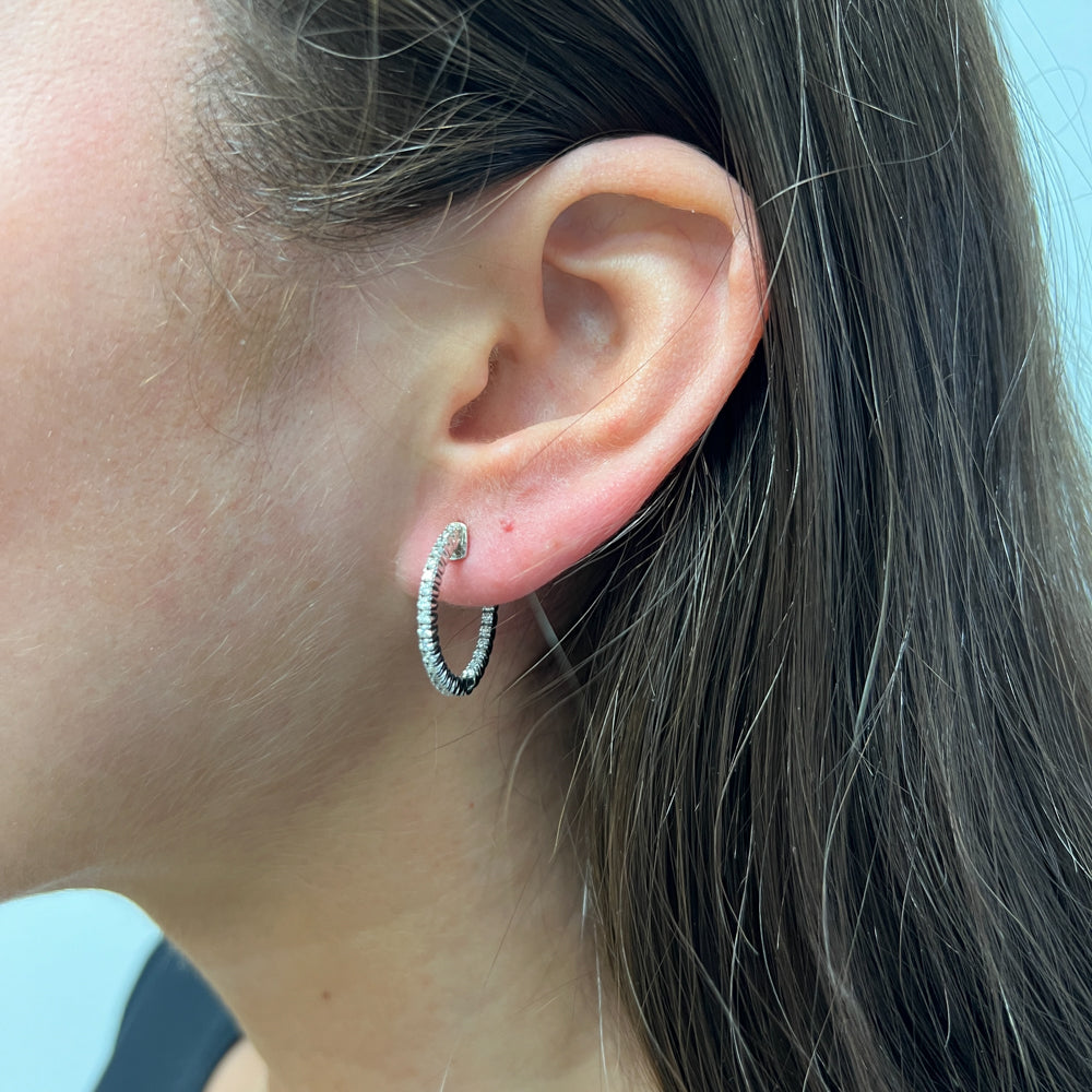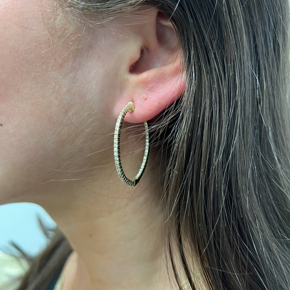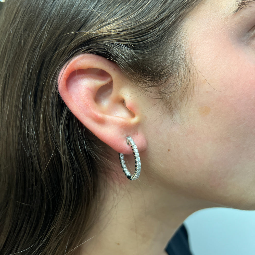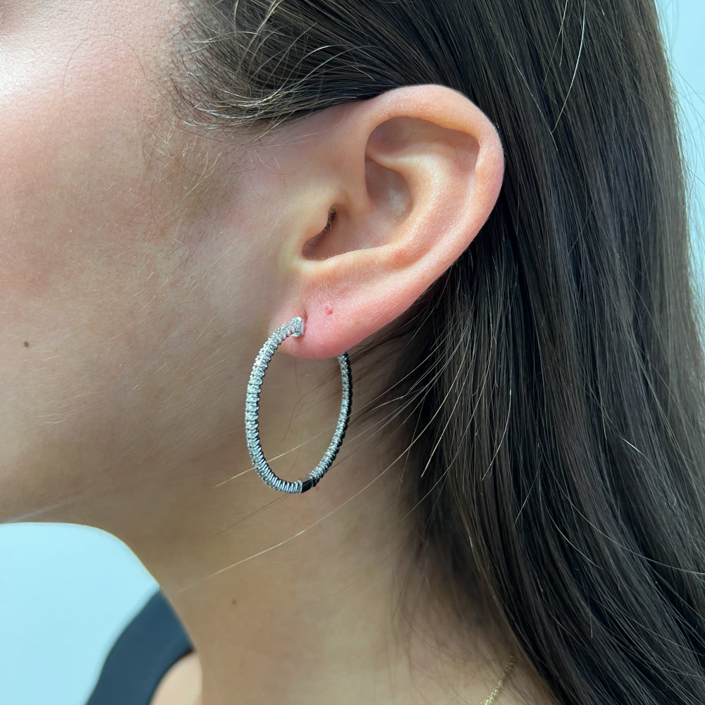 DFJ 14 Karat White Gold Four Prong Set Large Hoop Diamond Earrings, 1tw