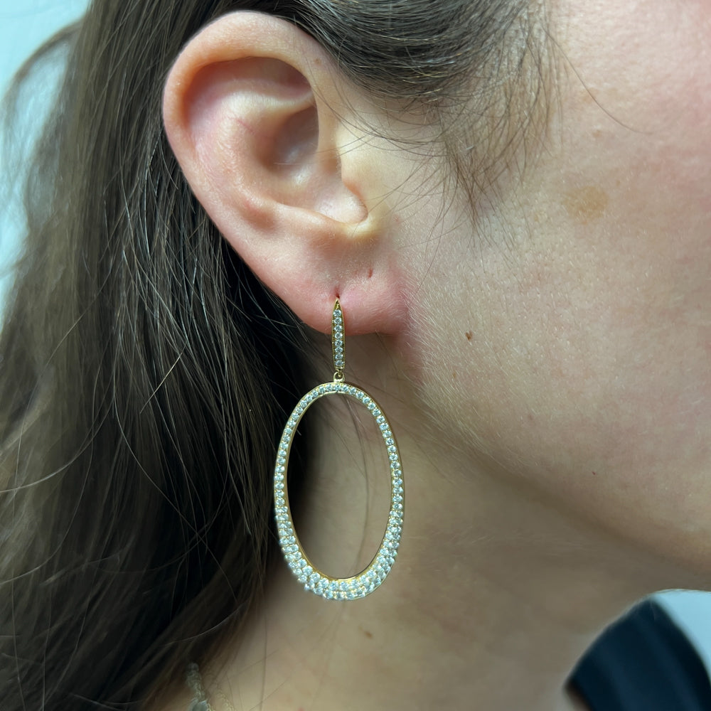 DFJ 18 Karat Yellow Gold Pave Set Diamond Earrings, 2.32tw