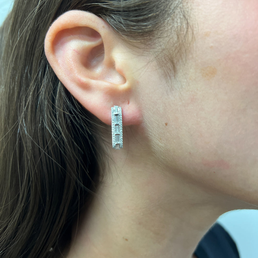 DFJ 18 Karat White Gold Pave Set Diamond Earrings, 0.26tw