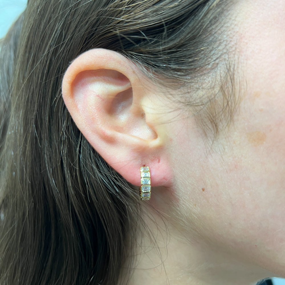 Sethi Couture 18 Karat Yellow Gold Nea Emerald Cut Diamond Hoops