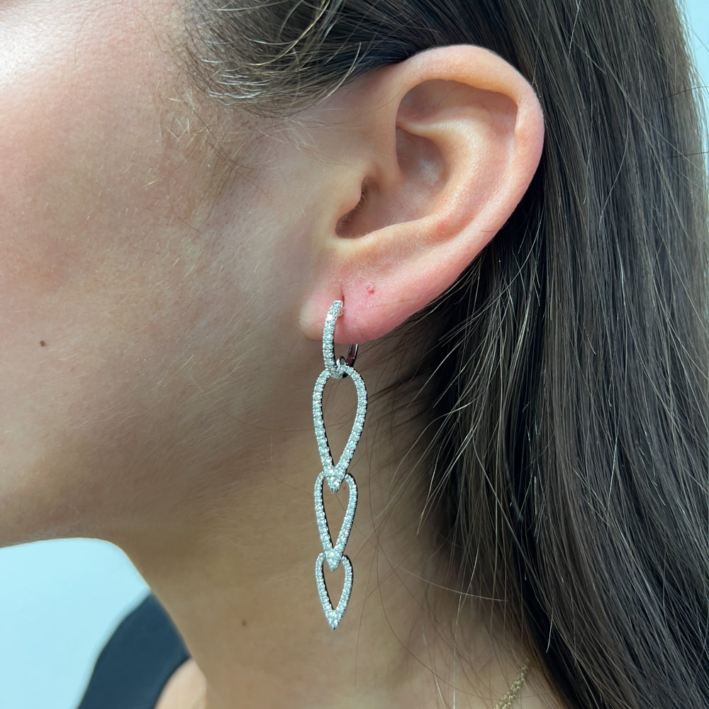 DFJ 18 Karat White Gold Pave Set Diamond Earrings, 2.94tw