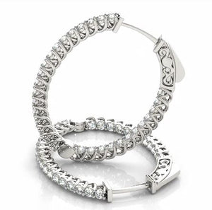 DFJ 14 Karat White Gold Diamond Oval Hoop Earrings - 1.30TWT