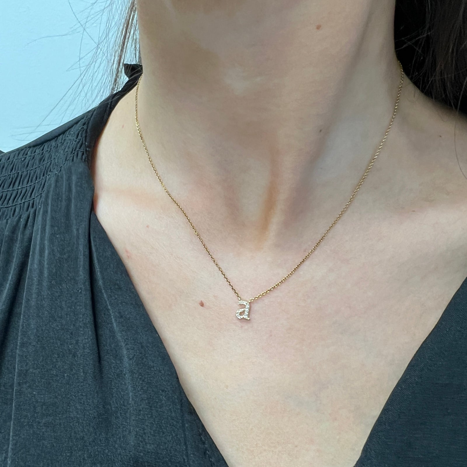 DFJ 14 Karat Yellow Gold Diamond Lowercase "a" Necklace