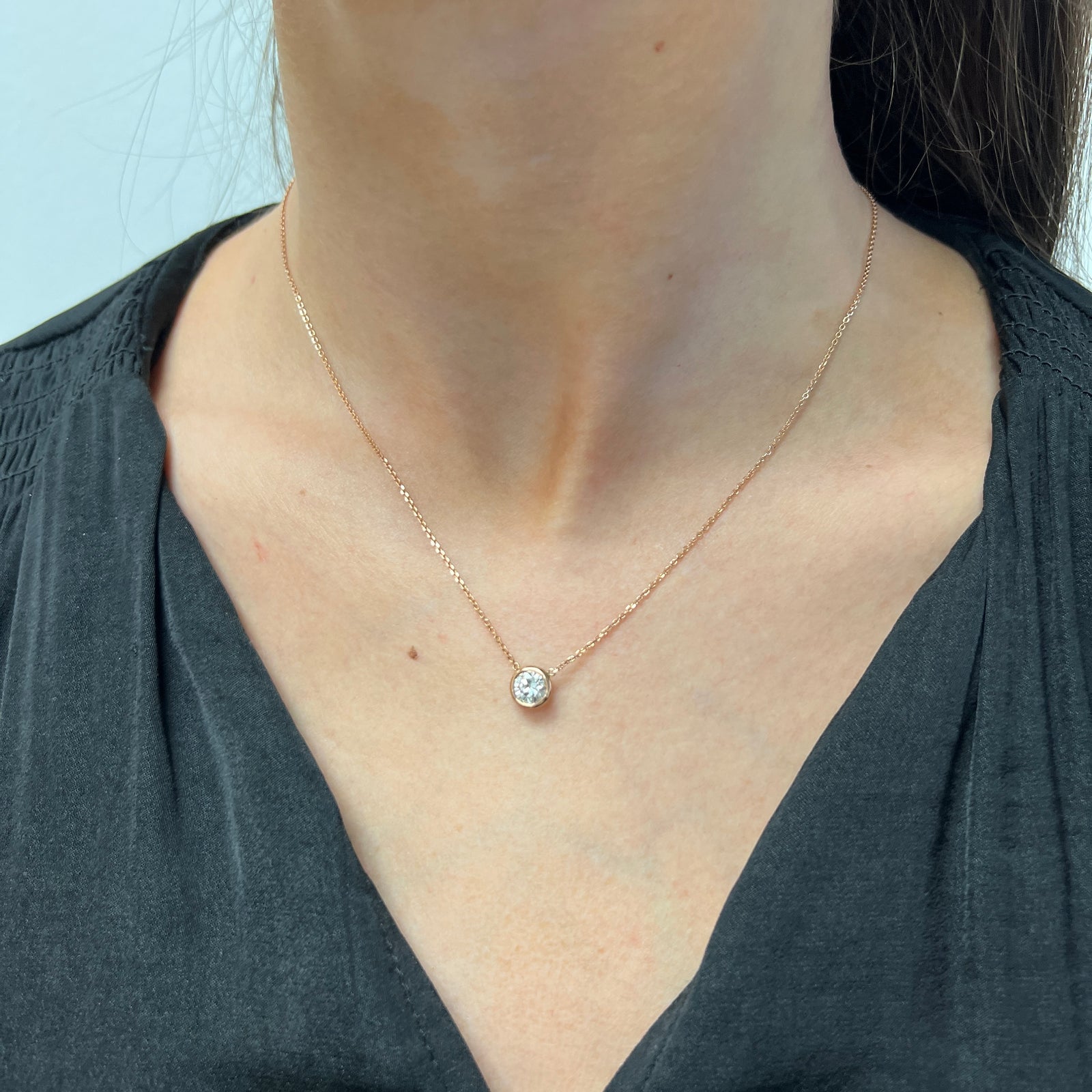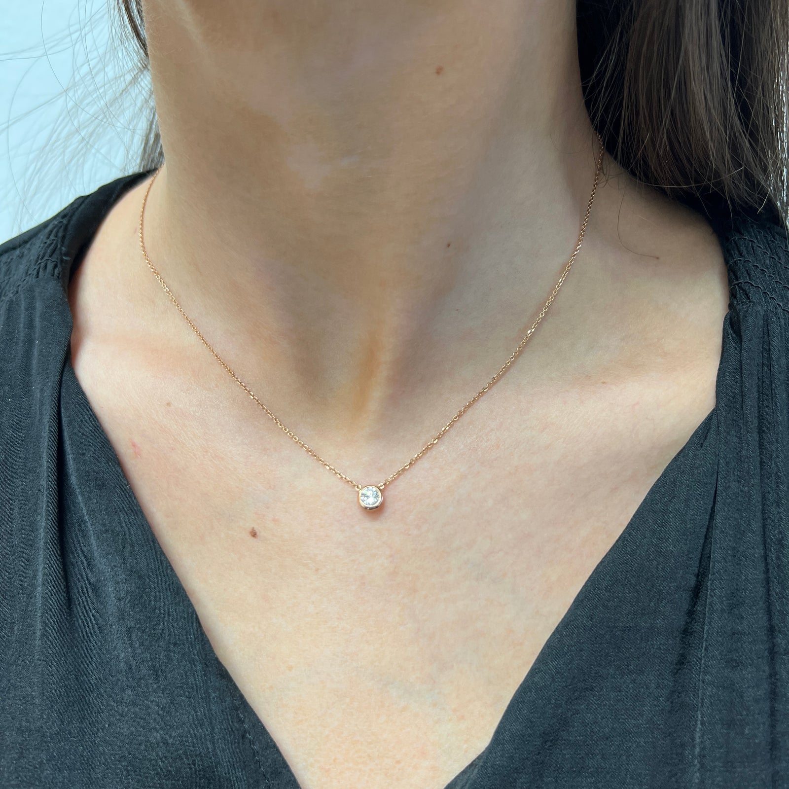 DFJ 14 Karat Rosé Gold 0.68ct Round Diamond Solitaire Necklace
