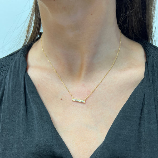 DFJ 18 Karat Yellow Gold Diamond Bar Necklace