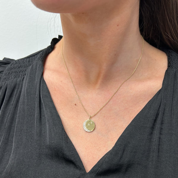 DFJ 14 Karat Yellow Gold Moon & Stars Necklace
