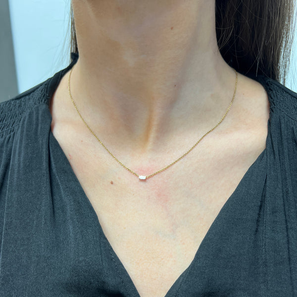 DFJ 14 Karat Yellow Gold Solitaire Baguette Diamond Necklace