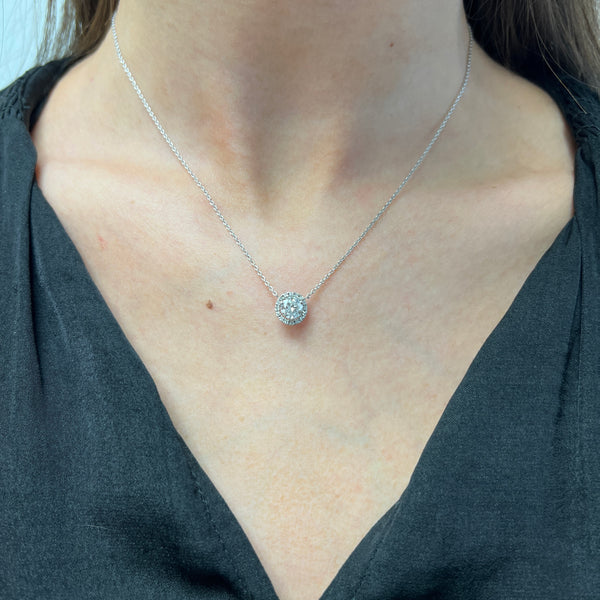 DFJ 14 Karat White Gold Round Diamond Halo Necklace 0.78tw