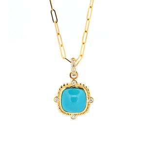 14 Karat Yellow Gold Necklace with 1 Turquoise = 4.10 Carats Total Weight