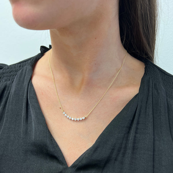 DFJ 14 Karat Yellow Gold Nine Diamond Curved Bar Necklace