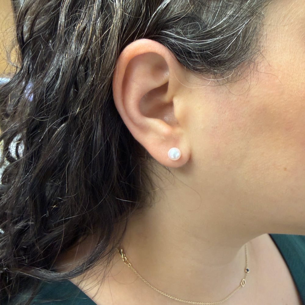 DFJ 14 Karat White Gold 7.5x8mm Akoya Pearl Earrings