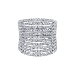 14 Karat White Gold Fashion Ring with 264 Round Brilliant Diamonds = 1.58 Carats Total Weight, G/H-color, SI-clarity.