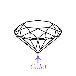 Bottom facet (or tip) of a gemstone. Old-mine cut and Euro cut diamonds will have larger culets whereas the modern cuts will have small or no culets.